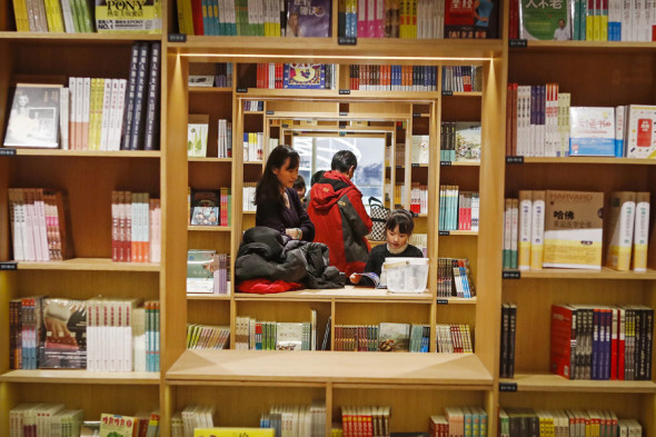 People read in a specially-designed Xinhua Bookstore at a shopping mall in Shanghai in December. (Photo provided to China Daily)