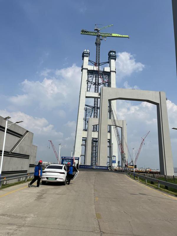 Zhang Taike, chief engineer of the project, the double-deck steel truss suspension bridge, said now more than 35 percent of the Shiziyang Link has been completed, and the 342-meter-high main tower is expected to be completed in March.