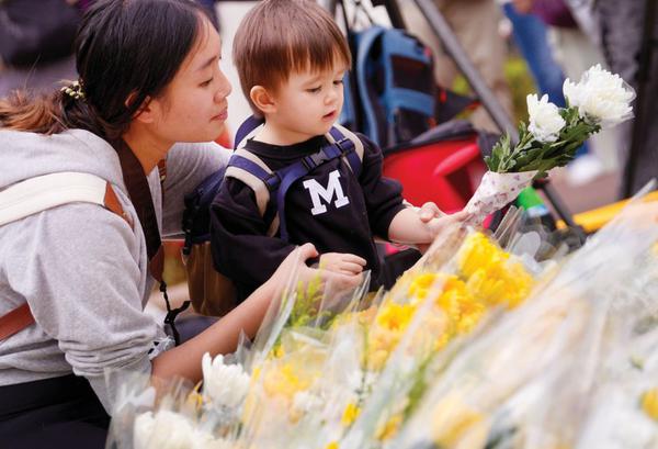 Residents place flowers near the site of the deadly blaze at Wang Fuk Court in Tai Po on Nov 30, 2025. (ADAM LAM/CHINA DAILY)