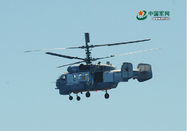 A Russian ship-borne helicopter is seen in a simulated air strike during the joint defense drill. During the "Naval Interaction - 2015" China-Russia joint maritime exercise, 9 Chinese and Russian warships held a maritime defense drill in an area of Mediterranean Sea on May 18, 2015. (Photo: Chinamil.com.cn/Zheng Wenda)