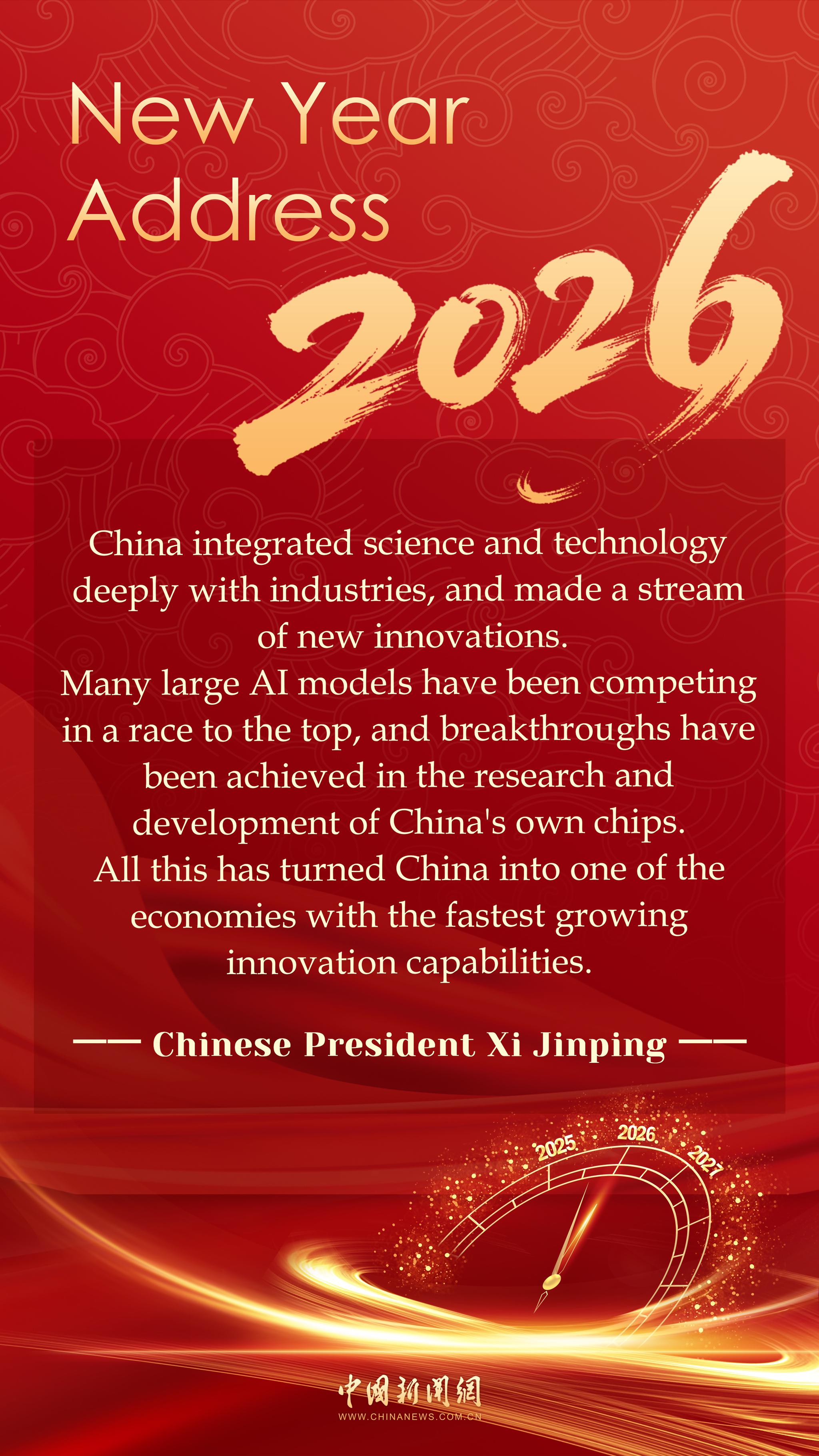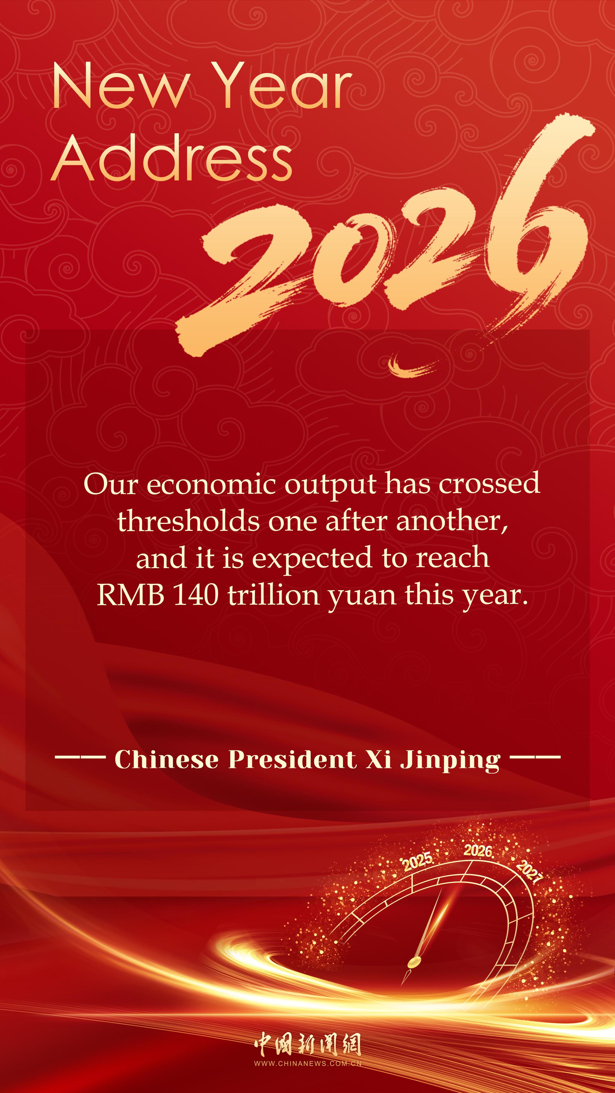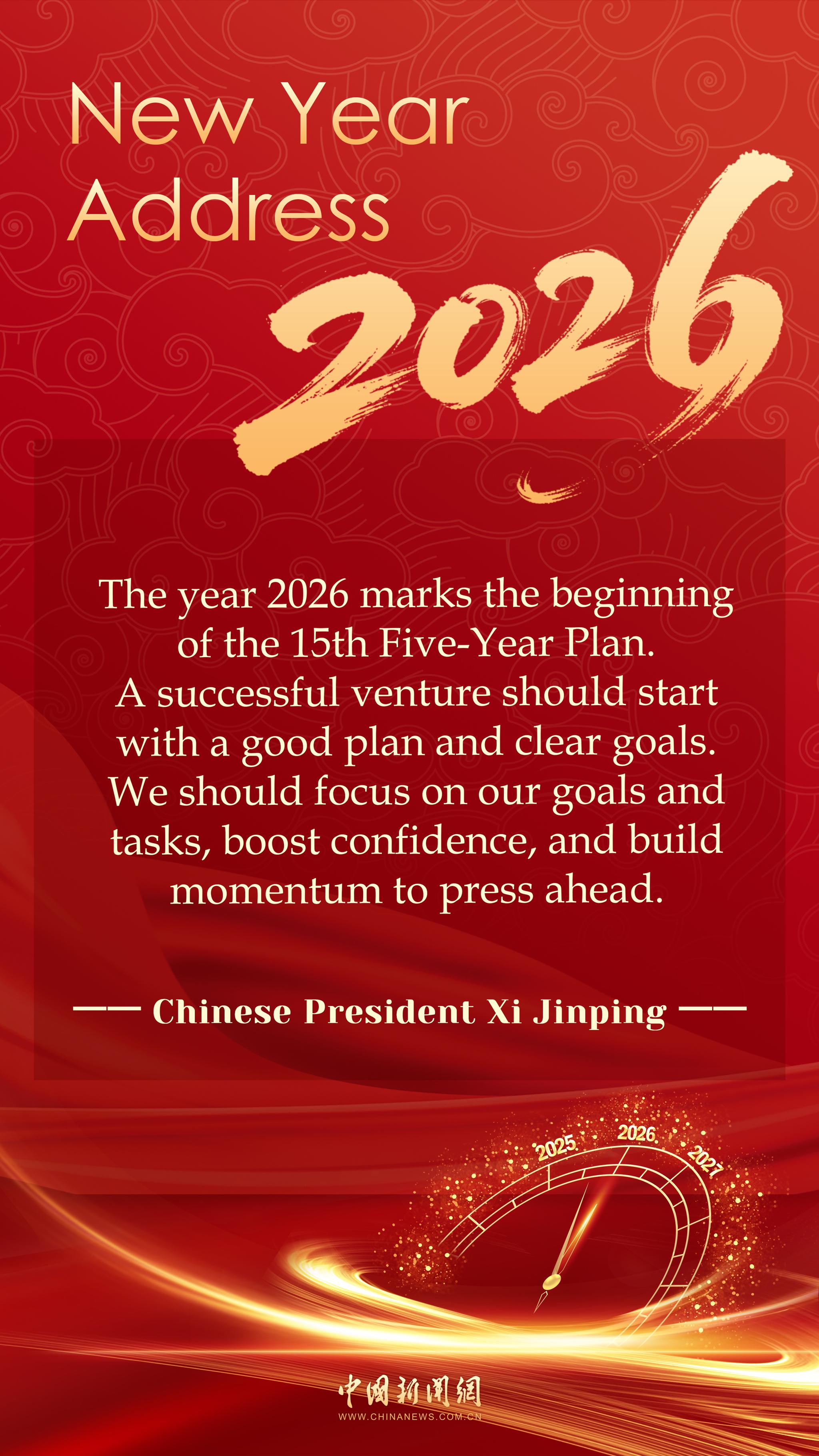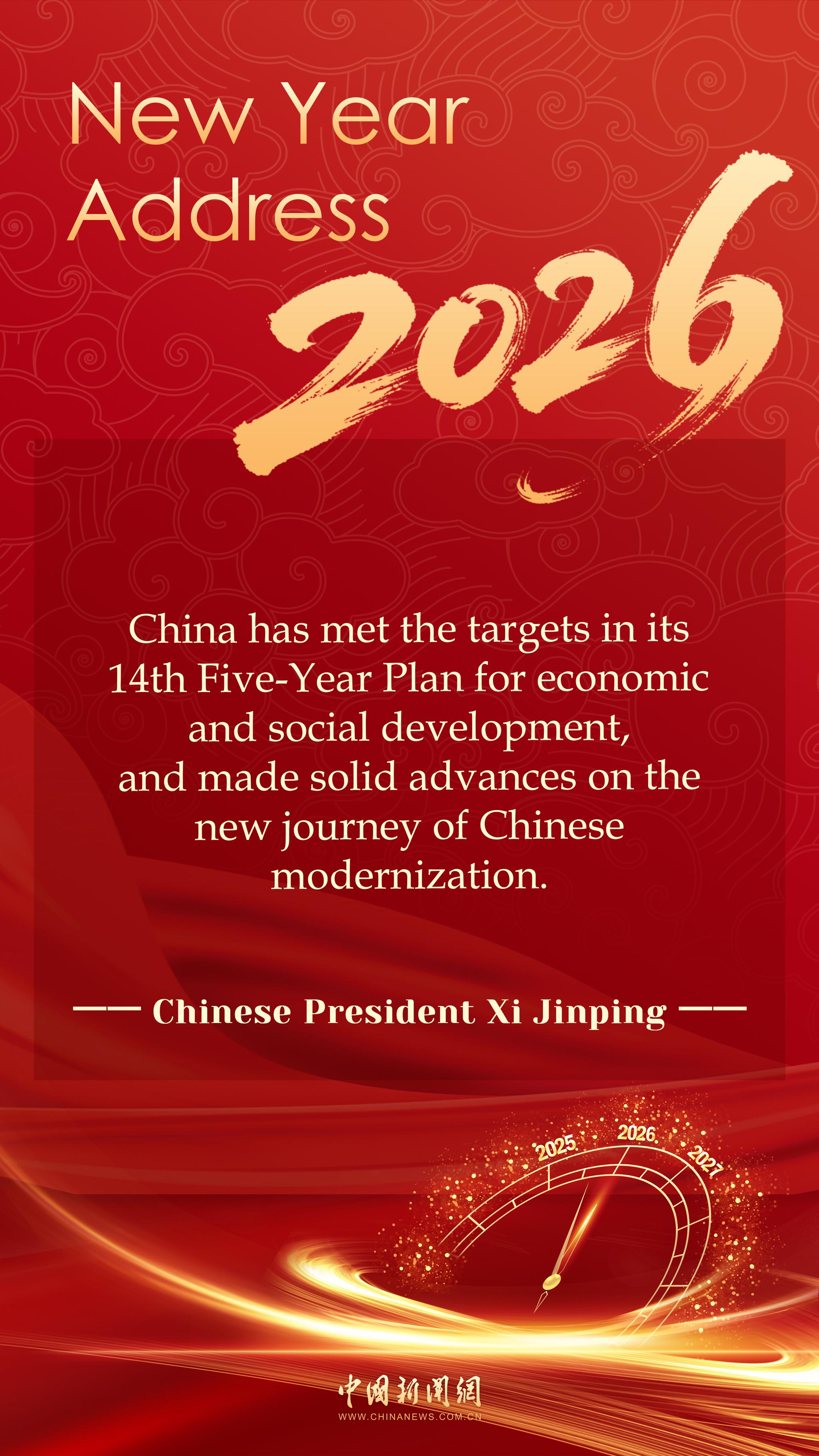 As the year 2025 marks the completion of the Plan, China's economic strength, scientific and technological abilities, defense capabilities, and composite national strength all reached new heights, Xi said in his 2026 New Year message.