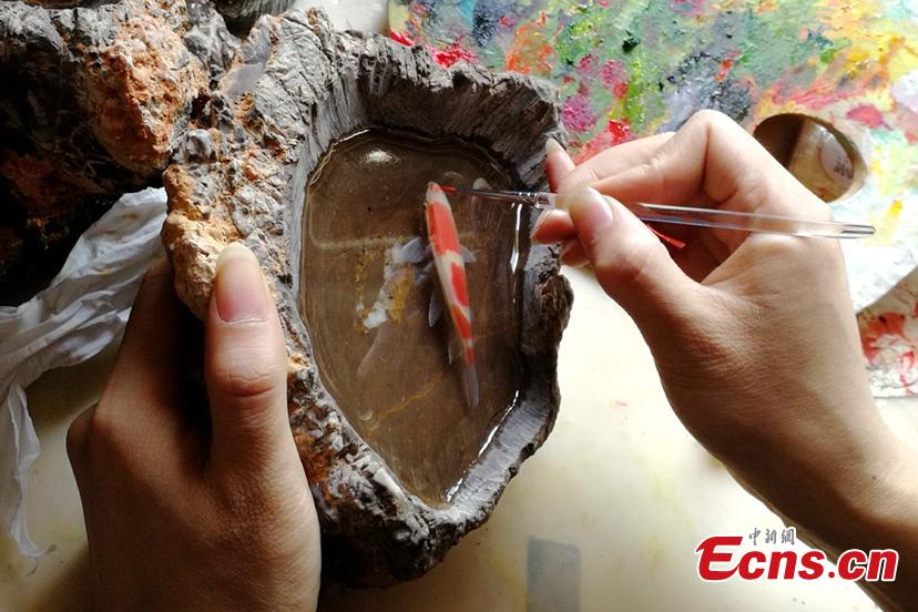 Graduate's resin painting deceives a cat