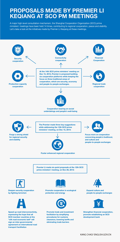 Proposals made by Premier Li Keqiang at SCO PM meetings