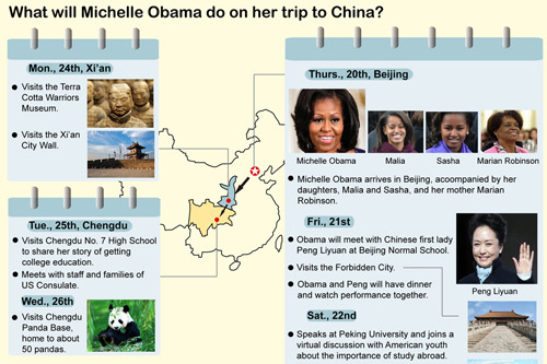 What will Michelle Obama do on her trip to China?