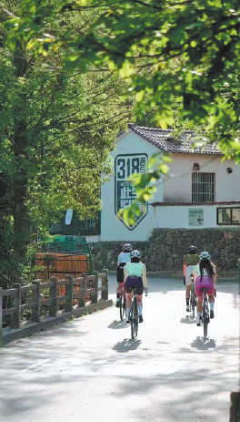 Cyclists ride through Xiayang village in Anji. (Photo provided to CHINA DAILY)