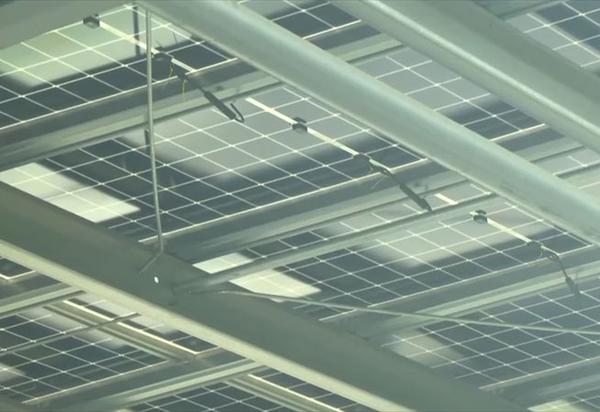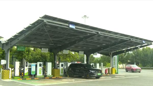 Solar panels are pictured on the rooftop of a super-charging station. (Photo/CMG)