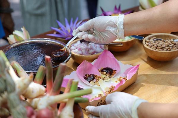 Travelers learn how to make the Thai cuisine of Miang in Dubua Cafe, Nakhon Pathom province. [Photo provided to chinadaily.com.cn]In response to the Thai government's policy of developing the country's soft power and building wellness into a major industry, the Department of Thai Traditional and Alternative Medicine has been working with provincial public health offices and other relevant agencies, as well as entrepreneurs, to open wellness centers nationwide.