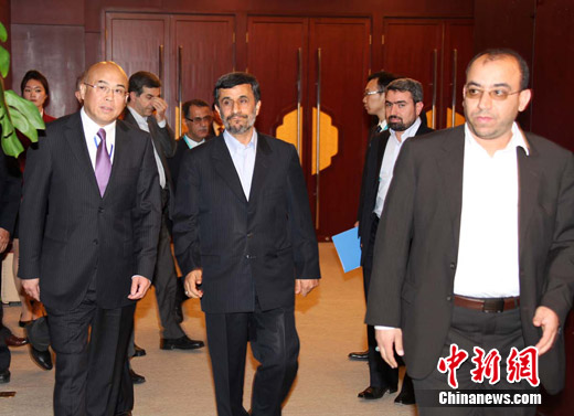 Iran’s president Mahmoud Ahmadinejad attends the Shanghai Cooperation Organization (SCO) Summit held in Astana, capital of Republic of Kazakhastan. China’s president Hu Jintao meets Mr. Ahmadinejad Tuesday, June 14, 2011.