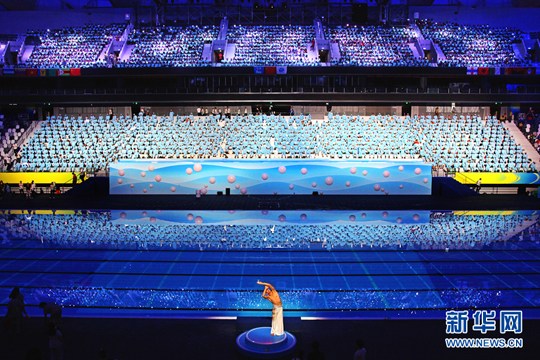 A massive rehearsal for the opening ceremony of the 14th FINA World Championships was held at the Shanghai Oriental Sport Center, July 11, 2011. The event is scheduled to open on July 16. [Xinhua Photo]