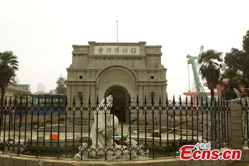 Workers dig trenches for a horizontal move of the main exhibition hall of the Yellow River Museum in Zhengzhou, capital of central China's Henan Province, July 19, 2011. Two wings of the museum had already been demolished, to be rebuilt later. For the construction of subway line 1 and 2, local authorities allowed a move of the world's first museum devoted to water conservancy. [CNS Photo/ Wang Zhongju]