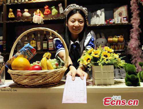 Waitresses at a "maid cafe" in Beijing, July 27, 2011. Maid Café has become a craze among youngsters across the nation. [CNS Photo/Hou Yu]