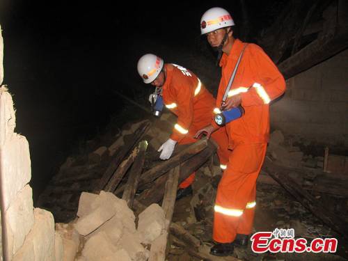 A 5.2 magnitude earthquake occurred on the evening of August 9, with its epicenter on the border between Tengchong County and Longyang District in Baoshan, Yunnan Province, leaving 2 people injured and some houses collapsed. [CNS Photo]