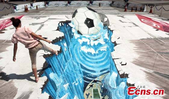 A 300 square meters 3D painting brought people to real scene on the street of northeast China's Changchun city, August 10. [CNS Photo/Zhang Yao]