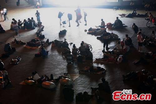 Thousands of travelers sleep on the square of Beijing West Railway Station on the late night of August 11. The 62 days summer travel season of this year is expected to reach its last peak. [CNS Photo/Liu Guanguan]