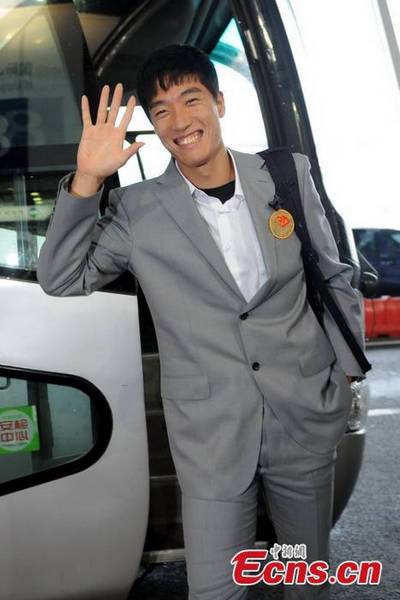 Famous Chinese hurdler Liu Xiang arrived in Daegu, South Korea, on August 25 to take part in his 5th World Championships, which is believed an important warm-up before the London 2012. [Osports Photo]