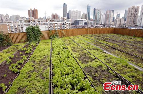 Shanghai locals grow vegetables on their own roofs. The plastic boxes, where seeds are sowed, don't crack easily under exposure to sunlight.[CNS Photo/Tang Yanjun]