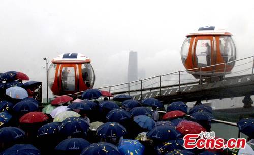 The world's highest Ferris wheel is put into trial operation, September 1, in Guangzhou, capital of south China's Guangdong Province. Built on the 450- meters Canton Tower, known as the Guangzhou TV Tower, the impressive wheel consists of 16 see-through pods which allow a 360-degree "crystal" clear view of the city. [CNS Photo/Liu Weiyong]
