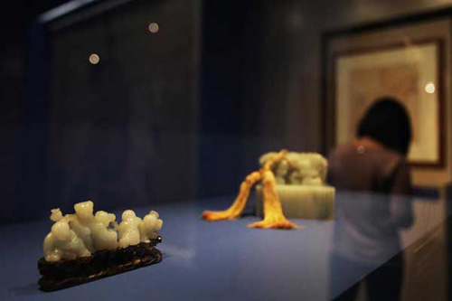 About 130 artifacts from the Forbidden City, China's ancient imperial palace museum, started to greet the French public in the Louvre Museum on Monday in an exhibition that will run until January 9, 2012.[Xinhua Photo]