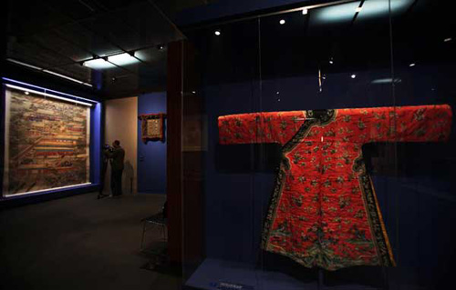 About 130 artifacts from the Forbidden City, China's ancient imperial palace museum, started to greet the French public in the Louvre Museum on Monday in an exhibition that will run until January 9, 2012.[Xinhua Photo]