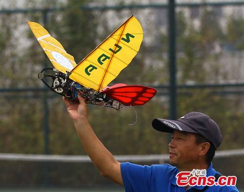 Various aircrafts designed by students of the Nanjing University of Aeronautics and Astronautics strike amazing poses of takeoff, rotation and landing on campus Tuesday. [CNS Photo/Yang Bo]