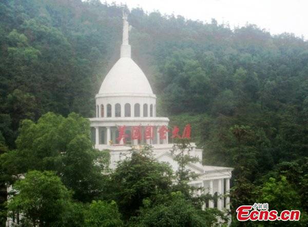 Beijing's "Great Wall" and "Tian'anmen Rostrum", as well as the "US Capitol" are seen in a village of Huaxi, east China's Jiangsu Province. The copycat scenic spots will boost local tourism, said a man in charge. [CFP Photo]