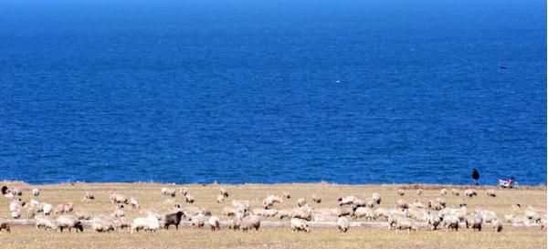 A flock of sheep graze beside Qinghai Lake, the largest lake in China, in Northwest China's Qinghai province, Oct 18, 2011. Thanks to an increasing precipitation and ecological protection measures, the lake has been expanding for seven consecutive years to an area of 4,353 square kilometers, the largest coverage in 11 years. It is also the largest salt water lake in China. [Photo/Xinhua]