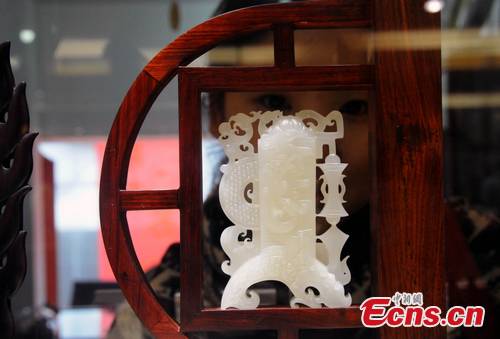 More than 800 jade carvings selected throughout the nation are displayed at a great collection exhibition during the 3rd Jade Culture Festival in Suzhou, east China's Jiangsu Province, November 11, 2011. [CNS Photo/Sun Zifa]