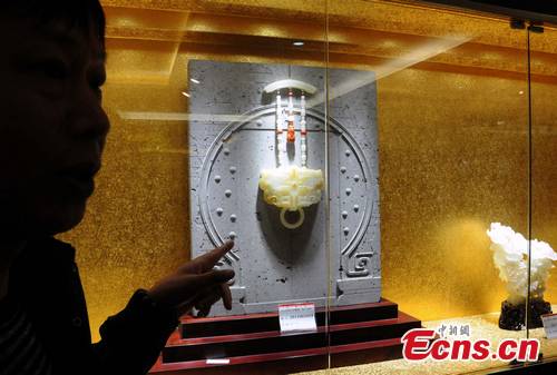 More than 800 jade carvings selected throughout the nation are displayed at a great collection exhibition during the 3rd Jade Culture Festival in Suzhou, east China's Jiangsu Province, November 11, 2011. [CNS Photo/Sun Zifa]