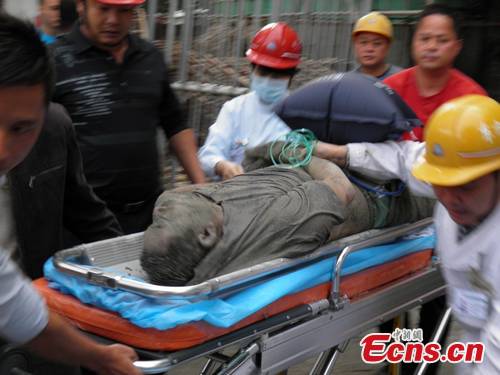 Firemen rescue 13 people buried under a collapsed bank office building, which was still under construction when the accident happened, in Shanwei, south China's Guangdong province, on Tuesday afternoon. Six of them died later due to serious injuries. [CNS Photo/Chen Shiyong]