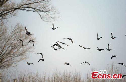 Birds gather in the Yellow River delta, November 22. It is the best time to watch birds in the nature reserve as their number totals to over 4 million in 298 species. [CNS Photo/Zheng Xudong]