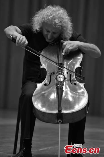World-renowned cellists Mischa Maisky plays lushly romantic music, together with his daughter Lily Maisky, a classical pianist, at the National Grand Theatre in Beijing on the evening of November 22. [CNS Photo/Jin Shuo]