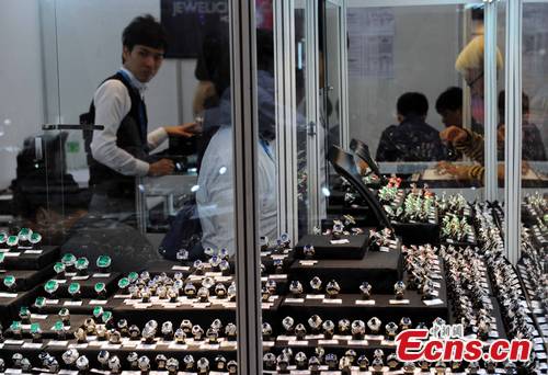The Hong Kong International Jewelry Manufacturers' Show 2011 held at the Convention and Exhibition Centre attracts 460 companies from 20 regions, November 24. [CNS Photo/Ren Haixia]