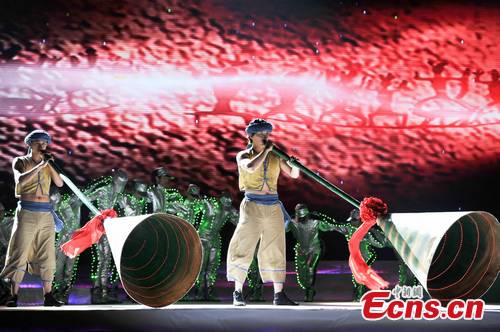 A series of striking folk music and dance is staged on the opening ceremony of the 24th World Hakka Conference in Beihai, south China's Guangxi Zhuang Autonomous Region, December 1. [CNS Photo/Hong Jianpeng]