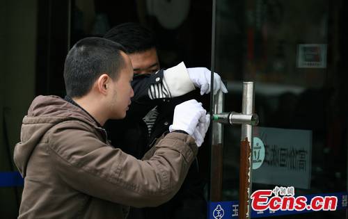 Police investigate a robbery at a jade jewelry shop in downtown Changsha, central China's Hunan Province, December 14, 2011. [CNS Photo/Yang Huafeng]