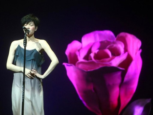 The Chinese pop queen Faye Wong conquers audience with her breathtaking singing at a "speechless" concert during which she only said four "thanks" in Xi'an, capital of northwest China's Shaanxi Province, December 23, 2011. [Photo source: nownews.com]