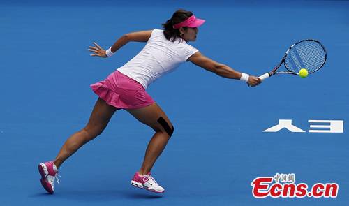 China's Li Na plays a backhand shot in her first round march against Ekaterina Makarova of Russia at the Sydney International tennis tournament in Australia, Monday, January 09, 2012. Defending champion Li Na has made a sizzling start, romping into the second round in 66 minutes. [Photo:Agencies]
