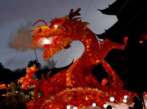 A dragon lantern is seen among other Chinese New Year decorations at Yuyuan Garden in downtown Shanghai Jan 17, 2012. [Photo/Agencies]