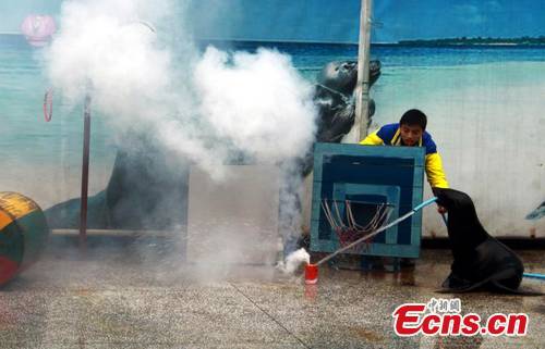 Animal stars of a safari park conduct a special fire drill in southwestern China's Chongqing Municipality, January 31, 2012. [ICpress]