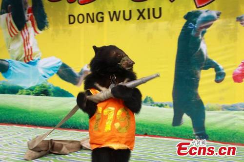 Animal stars of a safari park conduct a special fire drill in southwestern China's Chongqing Municipality, January 31, 2012. [ICpress]