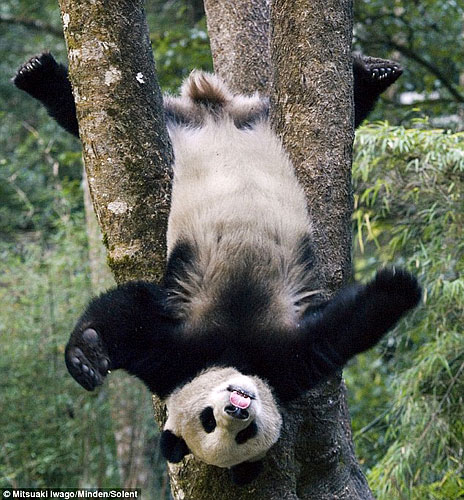 Japanese photographer Mitsuaki Iwago captures a sportive moment of a panda cub at the Wolong National Natural Reserve in southwest China's Sichuan Province. [Photo resource: cng.com.cn]