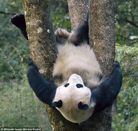 Japanese photographer Mitsuaki Iwago captures a sportive moment of a panda cub at the Wolong National Natural Reserve in southwest China's Sichuan Province. [Photo resource: cng.com.cn]