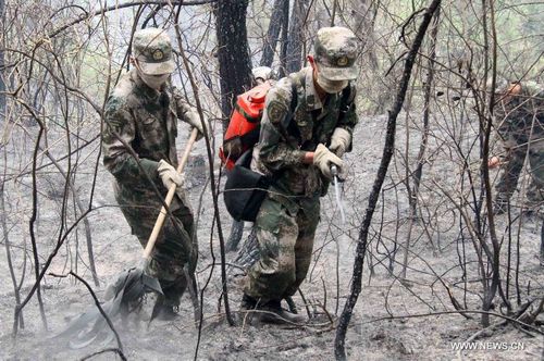 Firefighters battle flames in a forest in Jinning County, southwest China's Yunnan Province, March 31, 2012. A forest fire broke out on Wednesday in the Qingshuihe Village in Jinning County. After rescue efforts of some 2,000 firemen, the fire has been brought under control. (Xinhua/Xiong Zijun)