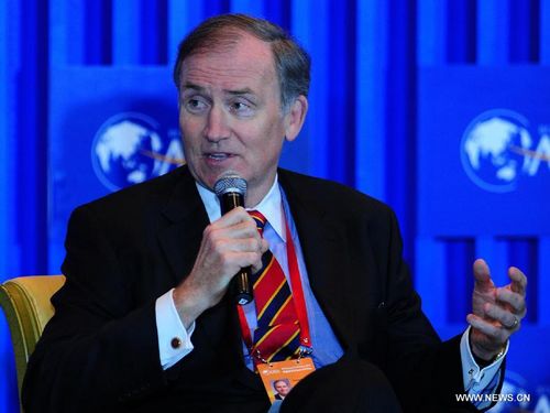 Robert Kimmitt, chairman of the Deloitte Center for Cross-border Investment, speaks at the panel of "Cooling off the Hot Money" during the Boao Forum for Asia (BFA) annual conference 2012 in Boao, south China's Hainan Province, April 3, 2012. (Xinhua/Hou Jiansen)