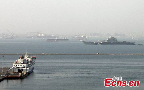 China's aircraft carrier returns to Dalian harbor after 9 days of sea trial, May 15, 2012. [CNS Photo/Dong Yongjun]