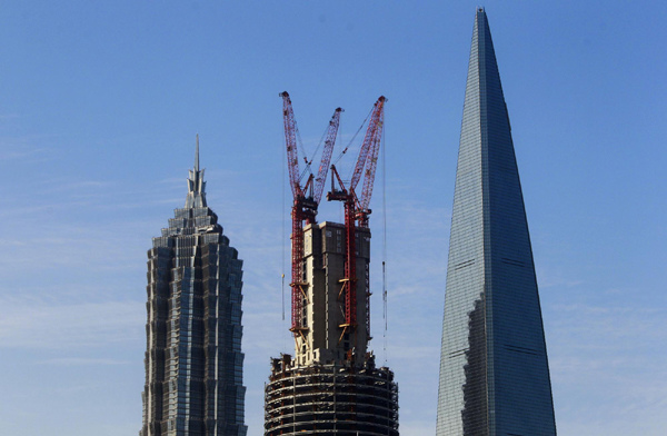 The Shanghai Tower under construction on May 28, 2012. [Photo/Xinhua]