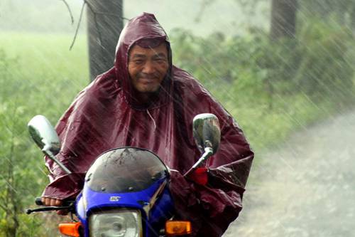 A man rides an electric motor in the torrential rain in Hanshan County, Maanshan City,east China's Anhui Province, Aug. 8, 2012. Anhui Provincial Meteorologic Bureau has issued orange pre-alert signal as typhoon Haikui is excepted to land in the south of Anhui on Wednesday, according to the prediction released by National Meteorological Center. (Xinhua/Zhang Rui)