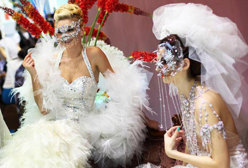 International models show new wedding dress styles at the 2012 Yangtze River Delta Wedding Culture Carnival on Aug 12, 2012, in Nanjing, Jiangsu. [Yang Bo/China News Service]