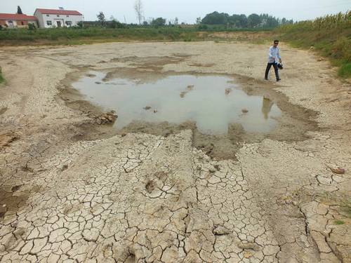 A pond dries up due to drought in Zhongxiang city, Central China's Hubei province, Aug 15, 2012. [Liu Junfeng/Asianewsphoto]