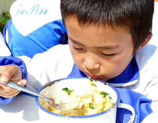 A students eats lunch at Xiaolingxiang Center Primary School in Yongjing county, Gansu province, on Sept 19. A total of 2.31 million students from 58 poor counties have been receiving free meals every day since spring, as part of a new government initiative to improve nutrition for rural students. The 16 billion-yuan ($2.53 billion) program was initiated in autumn 2011 and covers 680 poor cities and counties in Northwest China, allowing 26 million students to receive free meals for the duration of their compulsory education, which is primary school to junior middle school in China. [Photo/Xinhua]