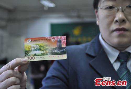Tickets go on sale for the Ninth China (Beijing) International Garden Expo in Beijing, April 10, 2013. According to officials, the Beijing exposition is still held as scheduled despite the fire that burned the body of Yongding Tower, an iconic building for the expo, on Monday. [CNS Photo/Li Boyang]